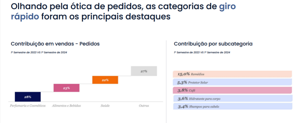 Segundo dados também do EQI da Lett (2024), o estudo mostra que a categoria de Perfumaria e Cosméticos representou 28% entre os principais destaques de giro rápido, reforçando como a execução digital é determinante para sustentar esse crescimento.